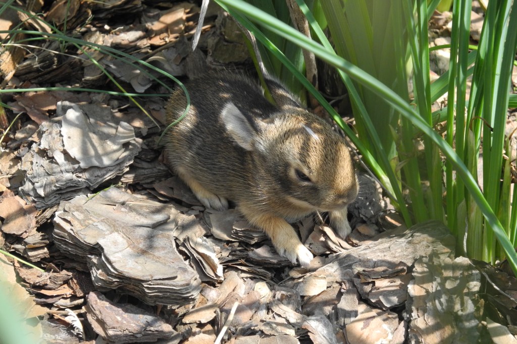 The other day we finally remembered amidst the stress to take a peek at the bunnies. Bob was ready with his camera. I moved the nesting material aside. Still could not see well. I moved it more. Seems the bunnies grew and got a lot stronger! I must have frightened them because suddenly one squealed and they began to run around the garden, looking for a place to hide. Oh my! ALL PHOTOS BY r m dutina – my dear husband.