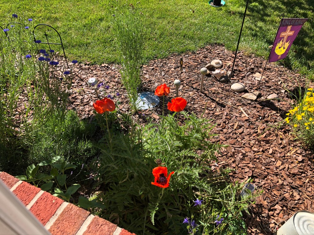 I think the heat and rain have about finished the poppies. And then, they keep blooming! I may try to thin them and move them about when they go dormant. Then again, I hesitate for fear I will damage or kill one!