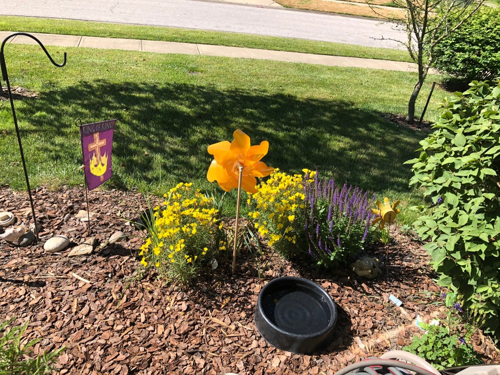 Planted this cheery yellow perennial a couple years ago. It is flourishing this spring. Would have to go out to the garden and get the tag to know it’s name. I keep forgetting it. I can use it in cut flower arrangements as long as it keeps access to the sun.