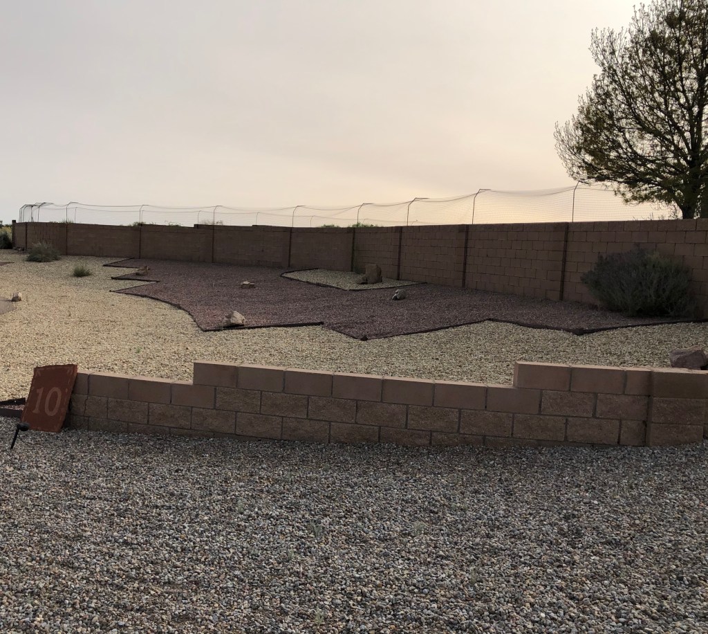 When I asked the Cookseys what the deal is with the curved fencing at the top of the extra-tall fence they said it is to deter the coyotes from getting into the yard. We have coyotes in Ohio, but nothing like Corrales or Albuquerque.