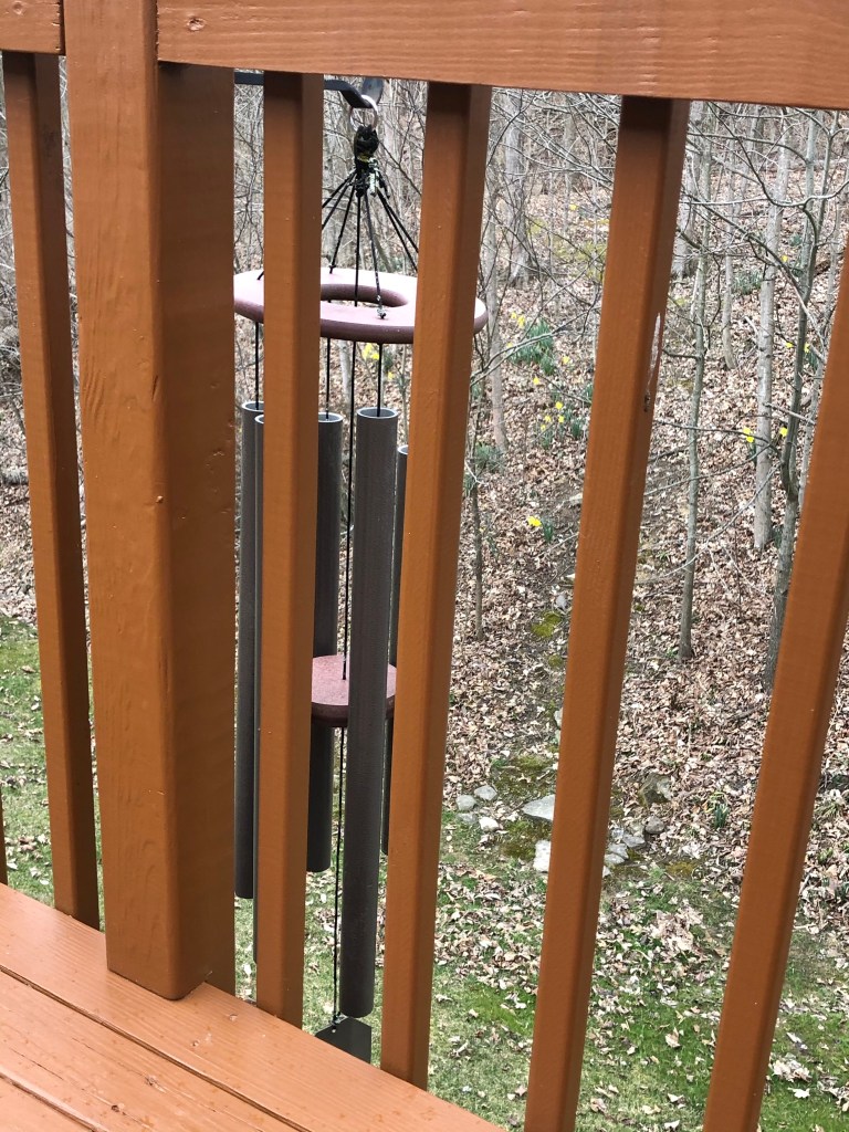 The giant tuned wind chime off the deck only rings when winds are strong. Harder to get a photo of this one!