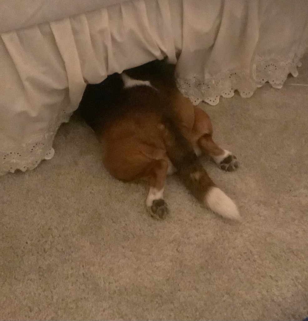 Here is what our beagle thinks of fireworks and thunderstorms.