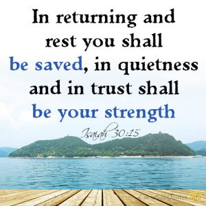 The Pastor pointed out that being too busy, busy-ness, is a popular American form of running from God. Perhaps you could try for one week the practice I have adopted lately when I am consumed with busy-ness. Taken from John 3:30 breathing in I pray “Lord, You must increase.” Breathing out I pray “I must decrease.” And I continue to consciously breathe and pray until I am centered in Him again. Yielding more of my life to Christ is never time ill spent. Holding still so He can have His perfect way in me is the highest form of living.