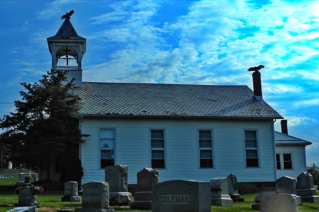 Driving one day we passed little white signs along the road, reminiscent of Burma Shave: “Come to the Church on the hill”, next one said, “You will feel closer to God.” Just about the time I began reading the signs we came to the top of the hill and there was indeed a church! Bob said, “Oh look at that eagle on top of the church!” as we whizzed past. I said, “That was no eagle. That was a turkey vulture.” Of course, we had to make a u-turn to be certain. Indeed there was a turkey vulture, this time drying his wings in the sun. And not just one, but two!