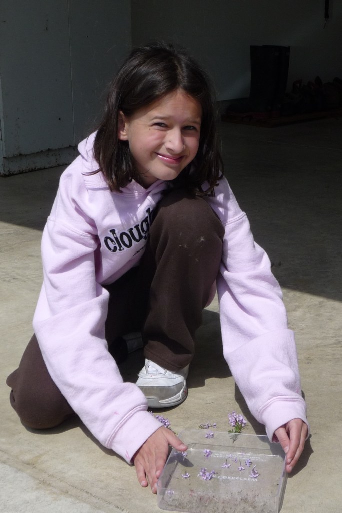 Grammy (me) reflected in doorphoto by r m dutina I thinkSorting and playing with Lilac flowers one spring