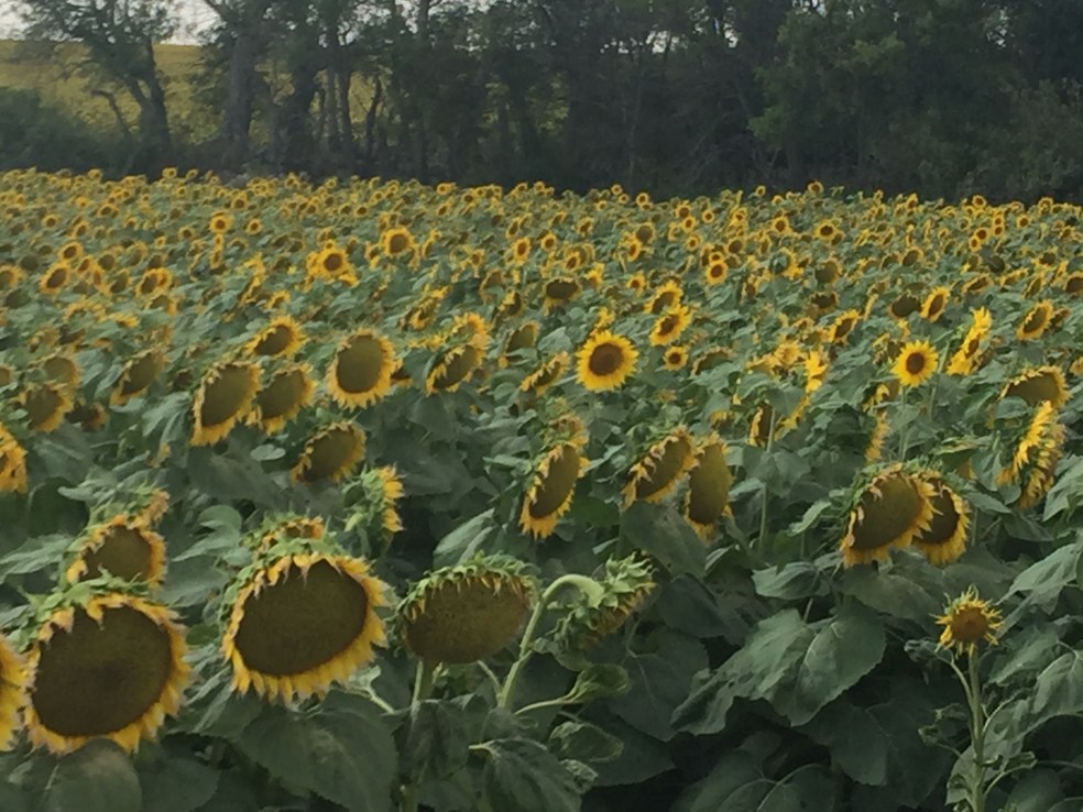 Often the sunflower fields are also lined with beehive boxes. Can you say sunflower honey?