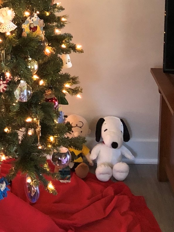 She has now dragged out Snoopy, who fortunately has sewn patches for eyes. No danger there! Wonder how Charlie Brown will taste to her?
