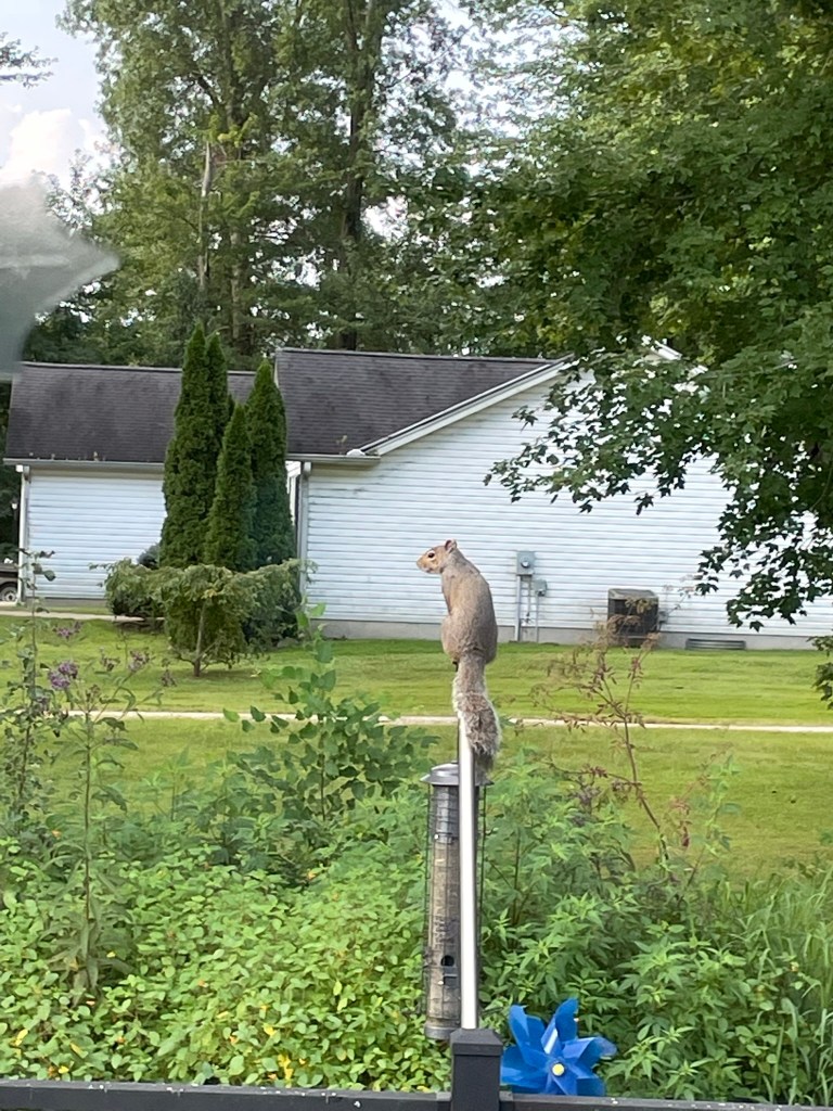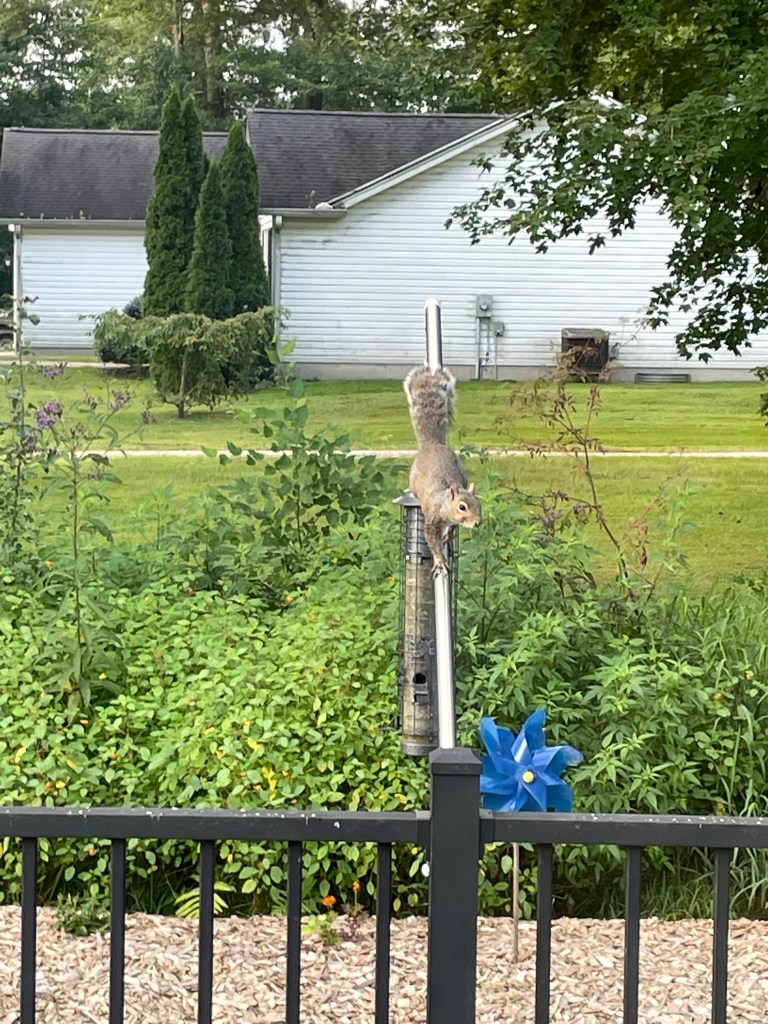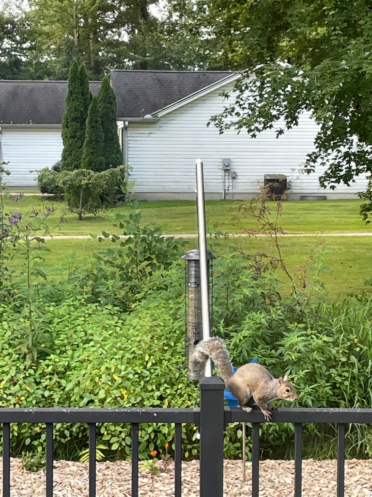 And then I had a session with the pleading squirrel. The feeder is designed to foil the squirrel. It entertains us wonderfully. Too bad for the squirrel.