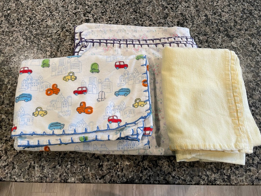 Recently a friend wanted to know how to make the receiving blankets she had seen me create. Her desire was to make some for a niece as there is nothing like this in the stores. Plus, she got to choose the fabric patterns! I decided why not post the steps?
