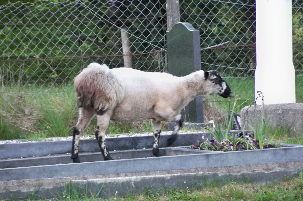 When we returned to the inn one of the employees asked if we enjoyed our walk. I told her how amused I was by the sheep in the graveyard. She told the bartender, “Better call Mr. Mc Creary! His sheep got loose again!” Now where better to get a tasty treat than on the loose in early morning at the graveyard?