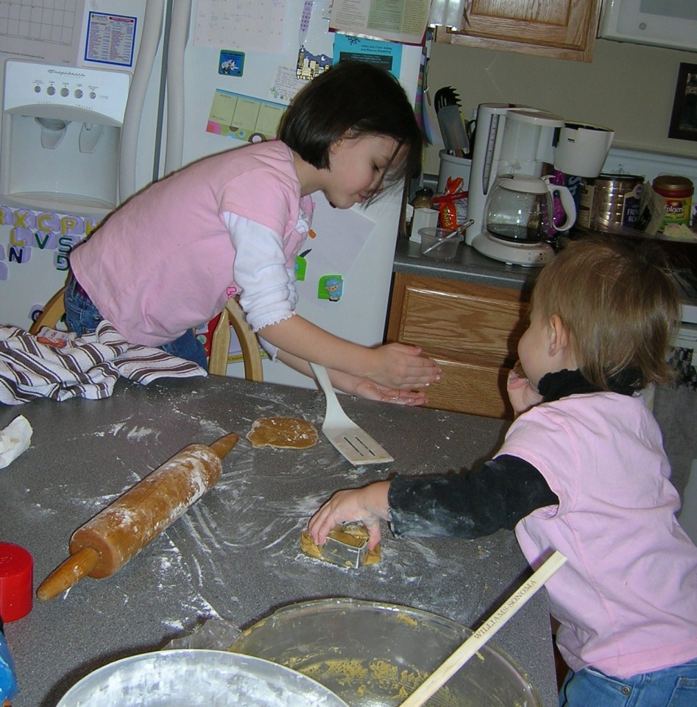 The grandchildren above are now 20 and 17 years old. They still come each year at Christmastime to make gingerbread cookies with me. In the photo above Lizzie (the oldest) was giving a cooking show narration of how to cut out the cookies. She had watched similar shows with her mom. Ellie (the youngest) is now taller than all of us!
