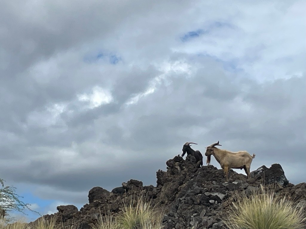Eventually we learned there are feral goats on the island of Hawaii. Once thought to be a gift to the people they have become destructive and out of control. They decimate native plants, overrun certain areas, run across busy roads, prove a challenge to control and there are no natural predators on Hawaii.