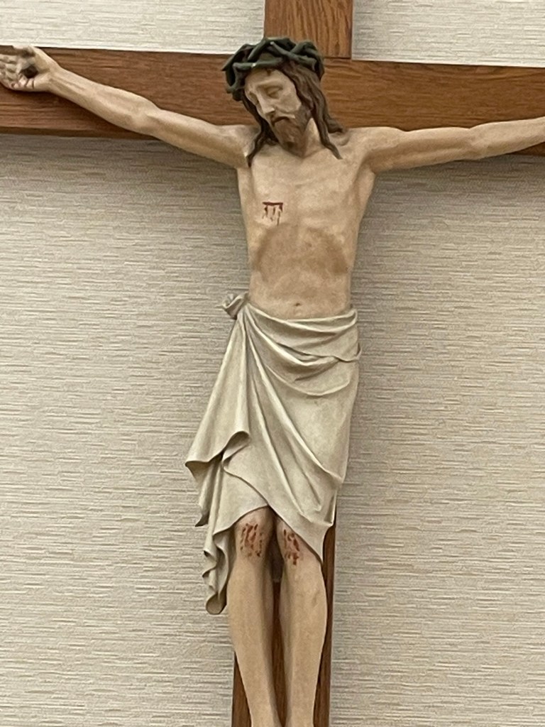 Recently I was eating lunch at the Sisters of Charity Convent and looked up at the large crucifix on the dining room wall. Something struck me as unusual. This one depicted His knees bleeding. Regardless of what version we embrace, I think we can all agree that on the way to Golgotha, Jesus did fall down. I never before noticed His knees on any crucifix I have seen.