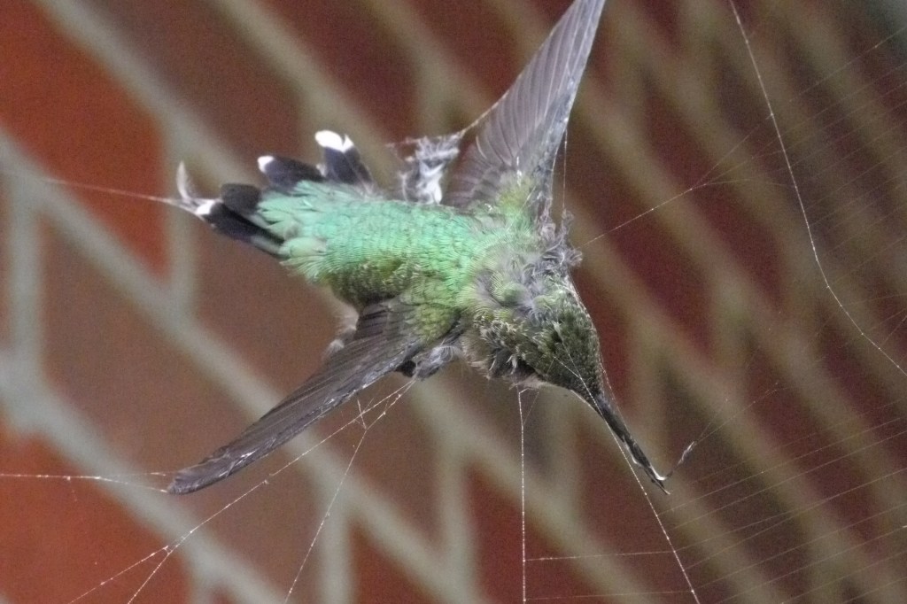 You might remember this photo from our other house where a spider captured one of “our” hummingbirds?
