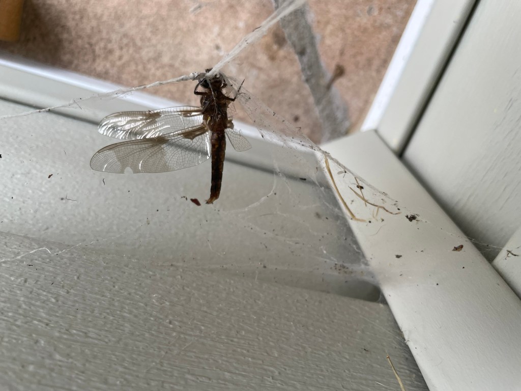 I try to follow my blogger friend Mike Powell at https://michaelqpowell.com/2024/07/09/blog-anniversary/ He is a dragonfly expert. His photography is most often amazing! Recently I was saddened to find this on the porch of our new house.