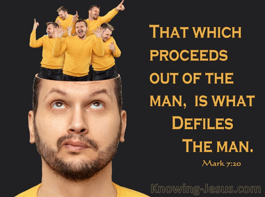 Quoting Mark 7:20-23 she wrote, “And he said, “It is what comes out of a person that defiles. For it is from within, from the human heart, that evil intentions come: fornication, theft, murder, adultery, avarice, wickedness, deceit, licentiousness, envy, slander, pride, folly. All these evil things come from within, and they defile a person.”