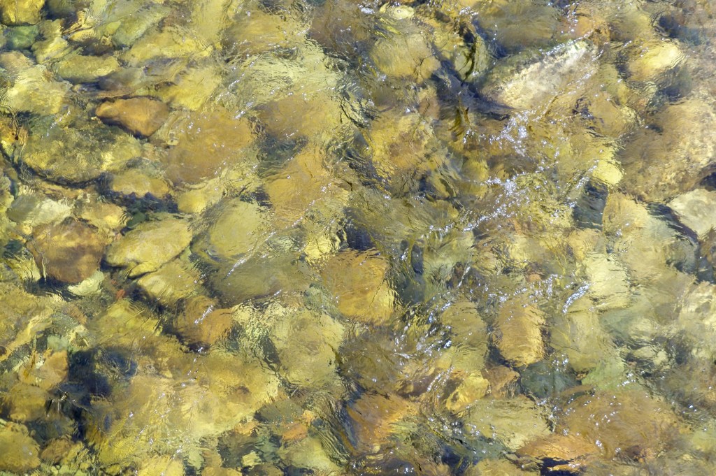 Standing above the water on a bridge, the water was so clear we easily saw the many stones in the stream bed.